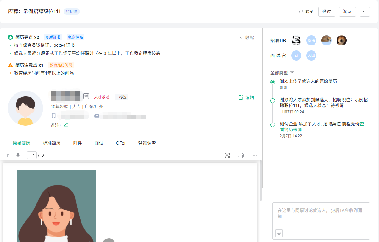自动识别简历亮点 & 风险点,从“读内容”到“给重点”,全新辅助HR快速筛选合适的候选人。